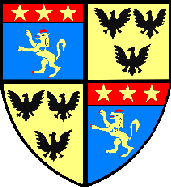 écartelé : au premier et au quatrième, d’azur au lion d'or couronné, armé et lampassé de gueules, au chef cousu de gueules chargé de trois étoiles d’or ; aux deuxième et troisième, d’or à trois aiglettes de sable, posées 2 et 1 |