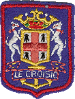 L'écusson correspond au blason de la ville. Les supports sont les traditionnelles levrettes présentes sur de nombreux blasons bretons.